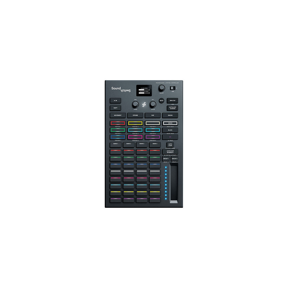 Caractristiques SoundSwitch Control One Contrleur physique sur mesure pour le logiciel SoundSwitch Plug & Play avec les systmes DJ administrs par Engine DJ 2.0 et suprieur (Engine Lighting) Shows lumire automatiques synchroniss avec les beatgrids Contrle les systmes lumire DMX et Philips Hue. Pads de performance avec rtroclairage RGB personnalisable Commandes de panoramique, d'inclinaison et d'intensit Mmoire embarque pour le stockage des patchs lumire et des paramtres. 4 connexions DMX de qualit professionnelle pour 2 univers DMX. Entre DMX pour fusionner avec des systmes d'clairage installs. Double USB pour des transitions sans coupures entre DJ Contrôle et mapping MIDI pour les effets lumière cran OLED pour les réglages et les préférences Univers DMX : 2 Type de connexion : 2 x USB DMX (3 broches) Alimentation : Aliment par USB Fréquence de répétition : 37 Hz 3 mois d'accès gratuit au logiciel SoundSwitch Dimensions : 20,7 x 16,5 x 4,5 cm Poids : 0,778 kg