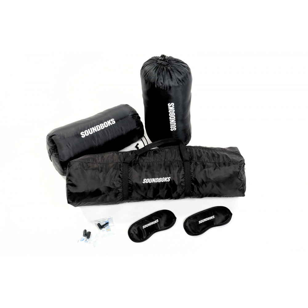 Découvrez en exclusivité le SOUNDBOKS FESTIVAL KIT. Un pack complet d'accessoires comprenant une tente, deux duvets, deux masques de nuit et deux paires de bouchons d'oreilles qui vous accompagnera pendant toute la saison des festivals.