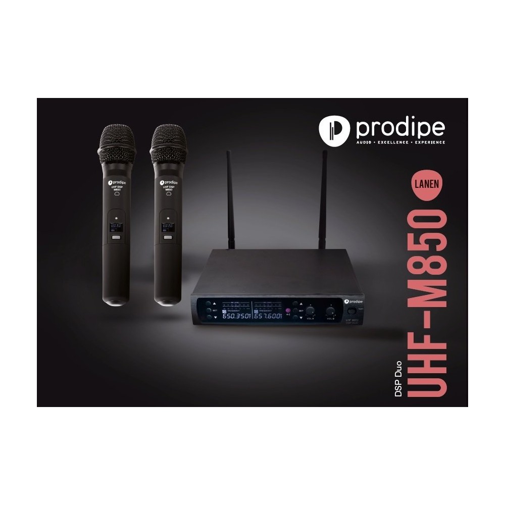 Quand Prodipe se met au service de la qualité et de la définition de votre son en UHF. Le système M850 DSP Duo est composé de deux micros main UHF avec écran d'affichage des canaux et bouton mute facilement accessible, d'un boitier de réception métal avec antenne BNC avec deux sorties symétriques sur XLR doublées par une sortie Jack asymétrique.