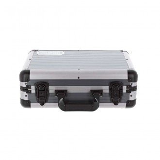 - Construction robuste en aluminium et bois - Partie supérieur amovible - Poignée confortable et souple - Double fermeture de type papillon - Revêtement intérieur en mousse ajustable à vos besoins - Couleur : noir et gris - Dimensions : 380 x 290 x 100 mm - Poids : 2,08 Kg